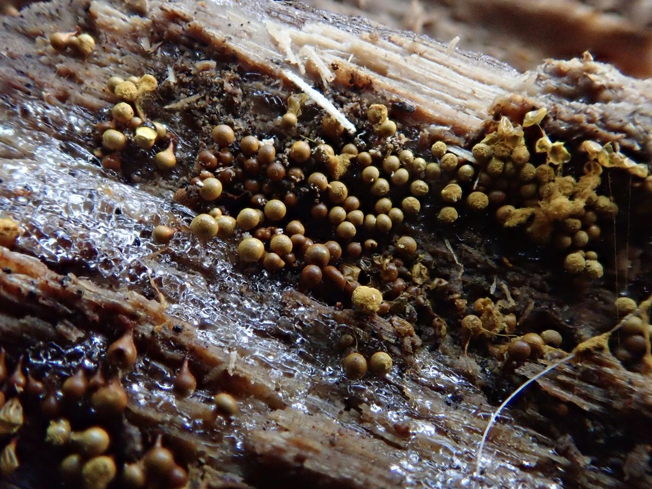 15.ヘビヌカホコリのすぐ横に出ていた変形菌。同じものでいいのでしょうか?