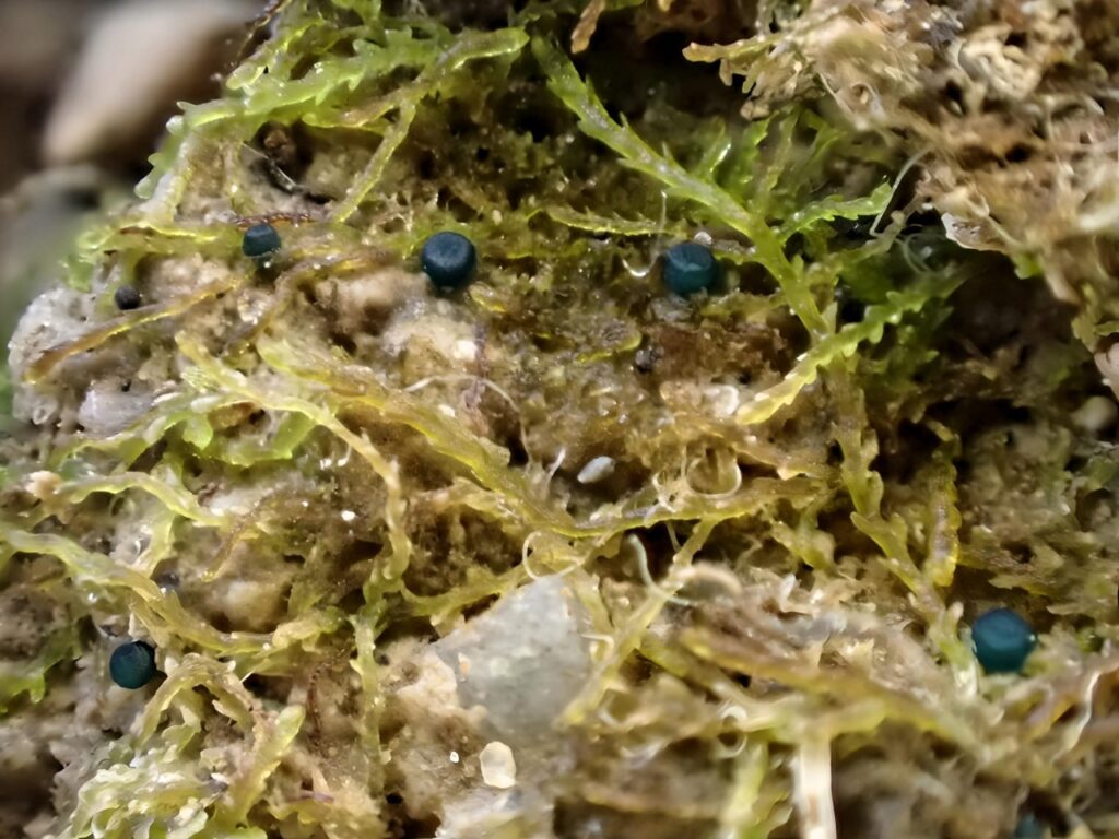 ミドリコケビョウタケは年末年始前後に出始めます。