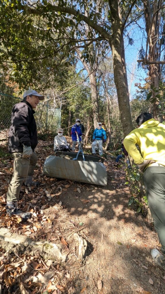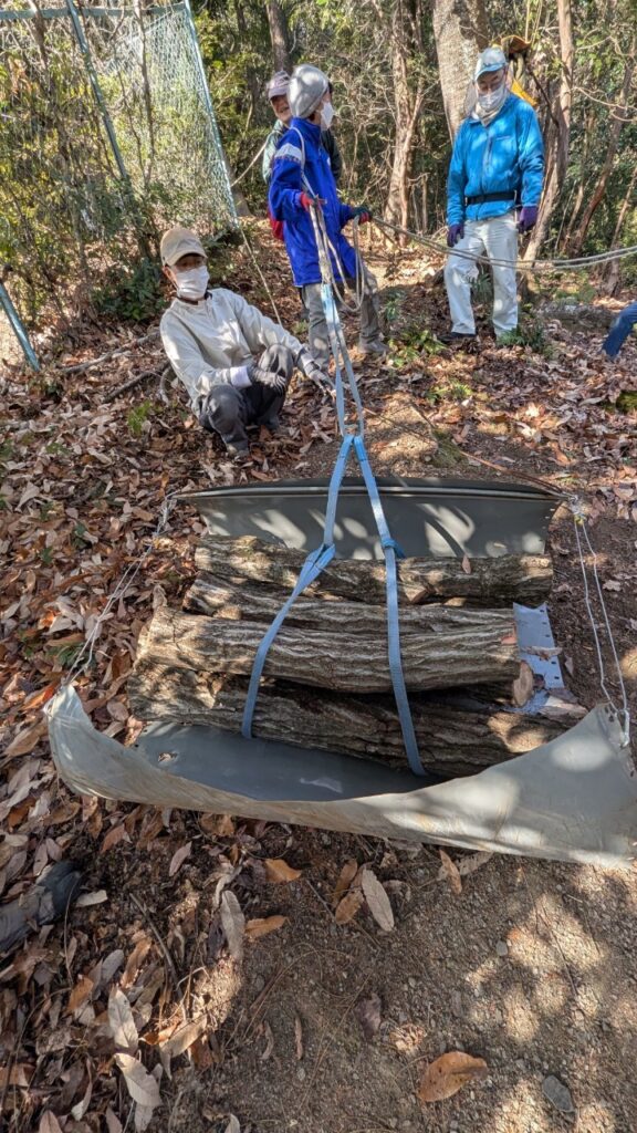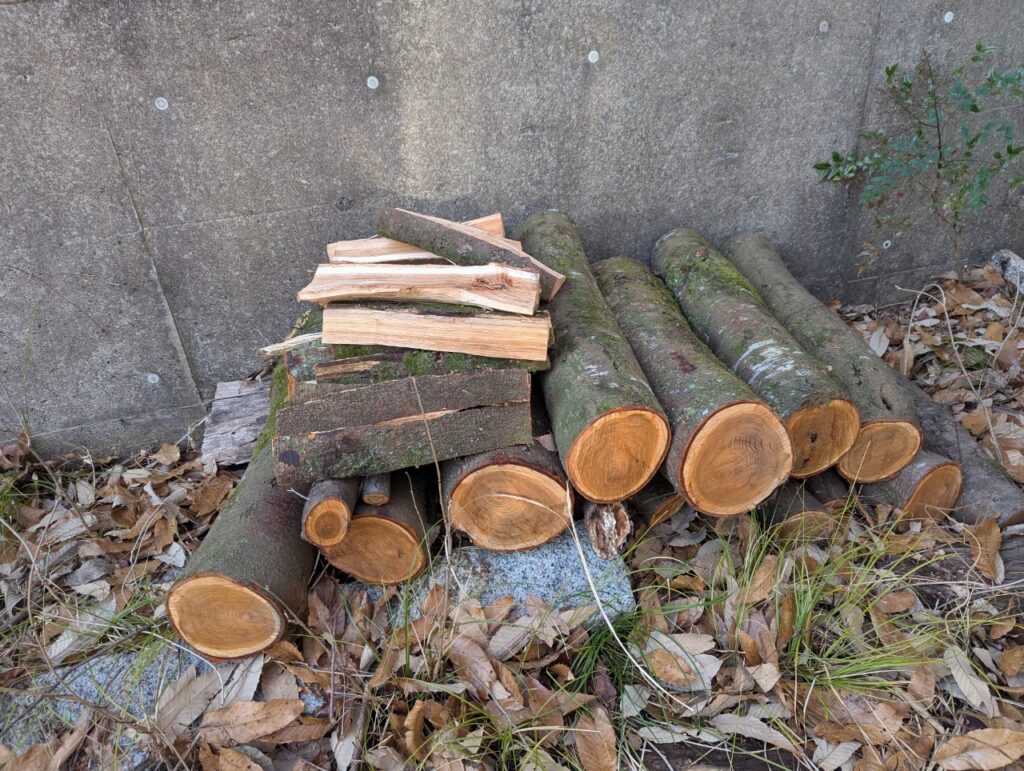 2025年2月 活動報告 HP管理人•2025-10-08 • コメントを残す 今月は、小学校に備蓄する災害時用の薪作りのため、広葉樹(アラカシ?)を伐りました。先月、尾根で作ったホダキも降ろしてきました。
